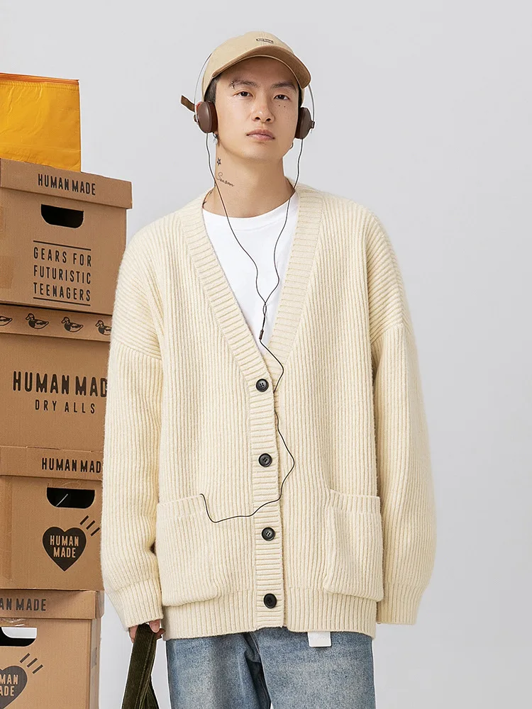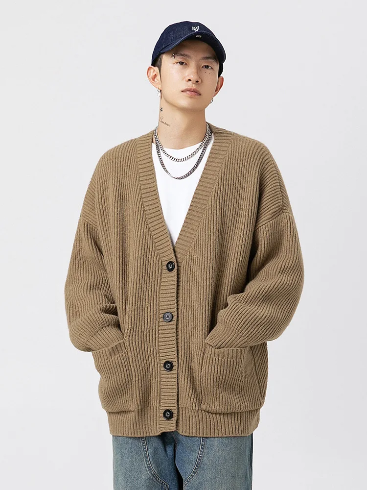 OEM & ODM Men's Autumn Winter Japanese Style Cardigan Sweater Simple Solid Color Knitted Jacket